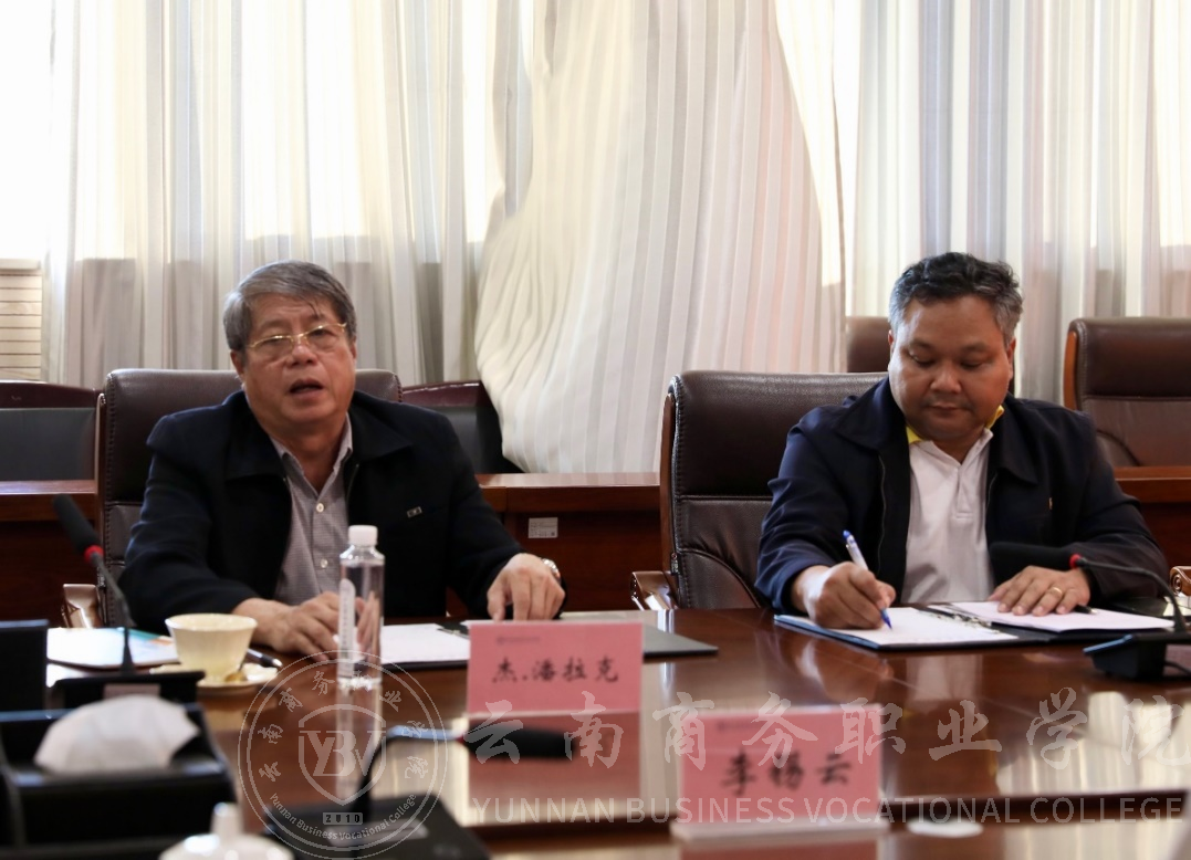 李锡云校长对老挝教育部代表团莅临我校表示热烈欢迎,并强调中老两国路邻相邻,两国人民情同手足,希望通过本次访问加深双方情谊,深度探讨合作项目和合作方式,能够将合作落地落实。汪湳副校长对学校办学情况作简要介绍,司长杰.潘拉克先生在认真听取学校办学情况介绍后,表示世俱杯sjb官网所设置专业符合老挝人才的需求,学校实训仪器设备完善,实训教学效果良好,具备良好的合作基础,将把学校的办学优势及特色向老挝大学进行广泛宣传,以促进双方师生交流,资源互补,共同推动两国教育事业发展和人才培养质量提高,期待未来能够合作成功。之后,大家在人才培养、师资培训等方面作了更深一步的探讨,为后续各项目的落地奠定了基础。