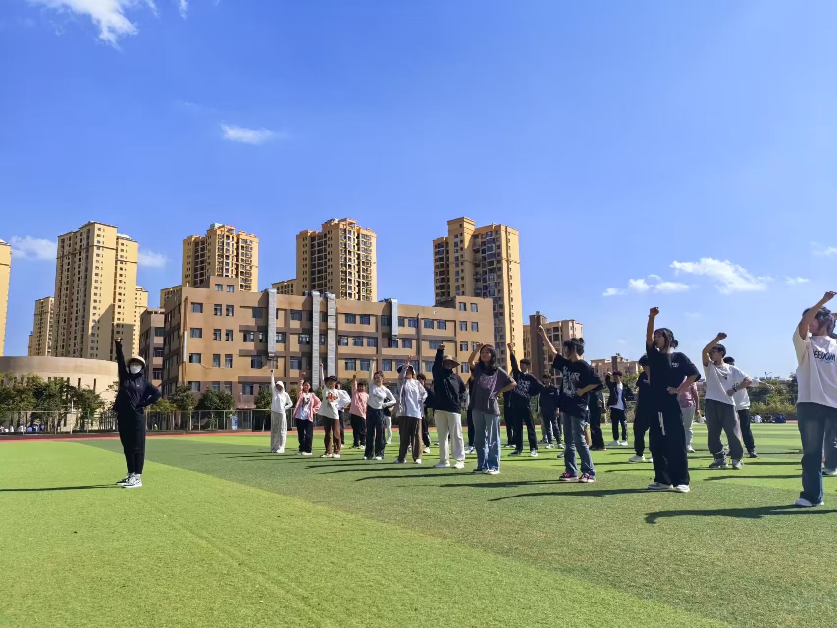 体育课堂上,王学磊老师以《八段锦》为教学内容,带领学生们开启了一场传统健身文化之旅。在舒缓的音乐节奏中,老师们跟随王老师的示范,一招一式尽显专注与认真,不仅掌握了八段锦的基本动作,更在传统文化的滋养中,实现了身心的和谐发展。