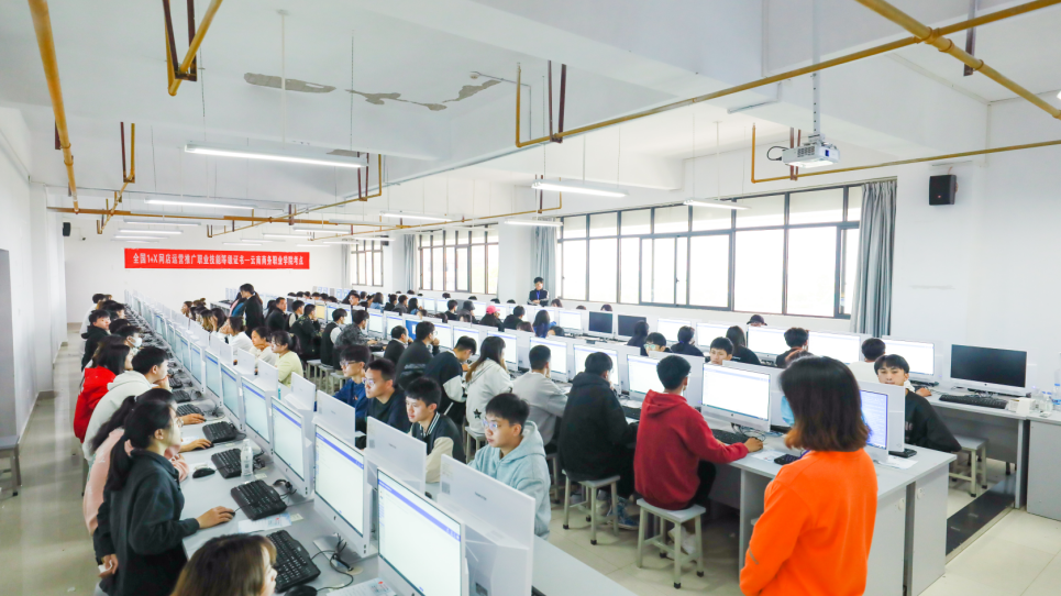 5月21日上午第二场——“1+X”网店运营推广职业技能等级证书(中级)。此场考试组织在电商实训室,共有100名学生参加考试。
