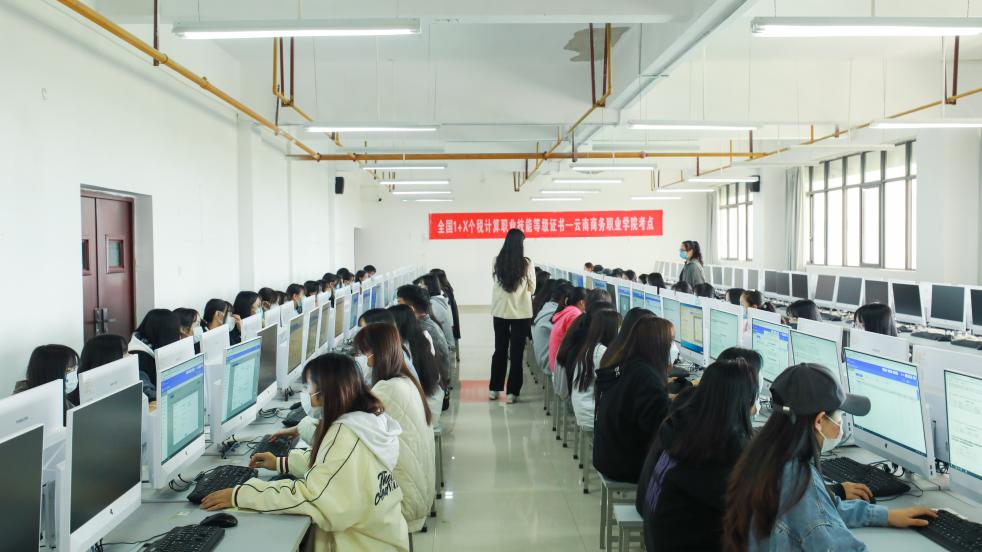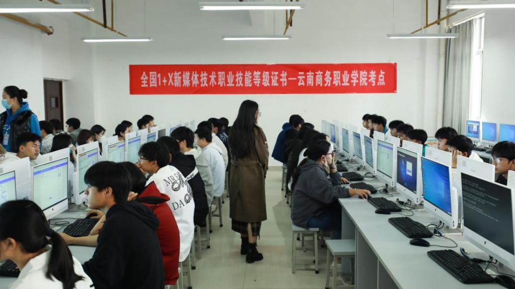 5月22日下午第四场——“1+X”新媒体技术职业技能等级证书(中级),此场考试在会计实训室,共有50名学生参加。