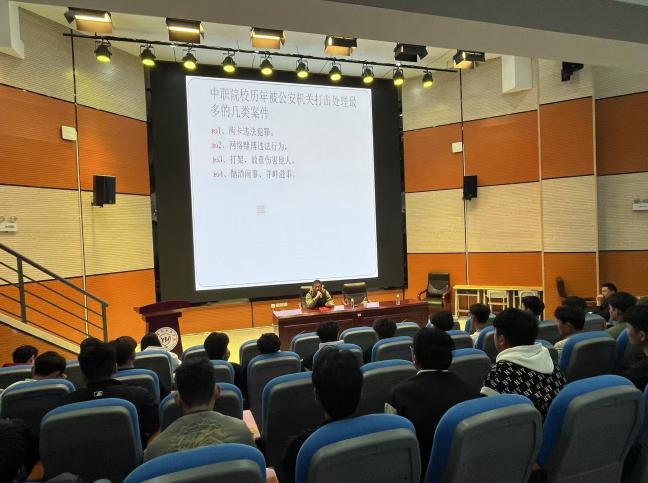 为加强学校安全宣传教育,增强师生法律底线意识,2025年2月25日下午特邀请法治务副校长杨志刚警官到校开展以法制安全为主题的讲座,各学院学生代表参加本次培训。