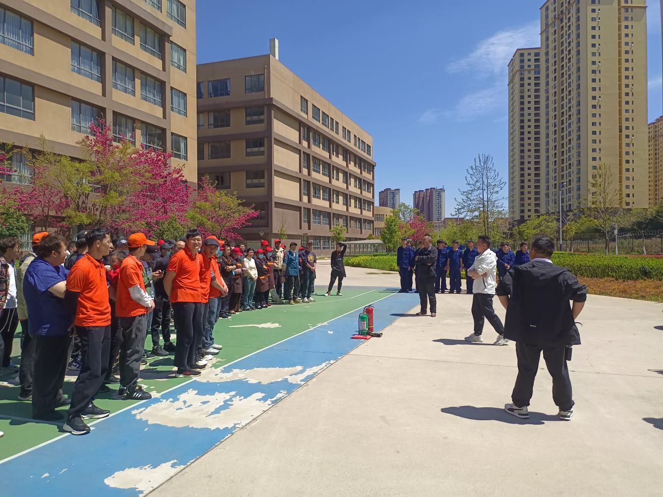 为切实提高食堂员工的消防安全意识和应急处置能力,3月25日下午,总务处在二栋背后小广场组织开展了灭火器使用培训。此次活动由安全与应急管理学院李春龙老师进行讲解,24名学生志愿者、200余名食堂员工参与,总务处张唐颂处长、李月明处长指导活动开展。