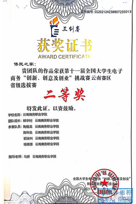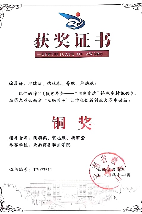 学院积极营造以赛促教、以赛促学人才培养环境,为师生参赛创造良好条件,近年来,学生在“直播电商”、“电子商务”等技能大赛获得省奖7项、获得互联网+“创新、创意及创业”省级一等奖等荣誉。学院教师曾参与省级重点课题3项、获省级奖项13余项,校级奖项30余项,多次带领指导学生参加“互联网+”等创新创业类赛事,并取得银奖1项、铜奖6余项等。一项项荣誉的取得,让师生发展路径不断拓宽。