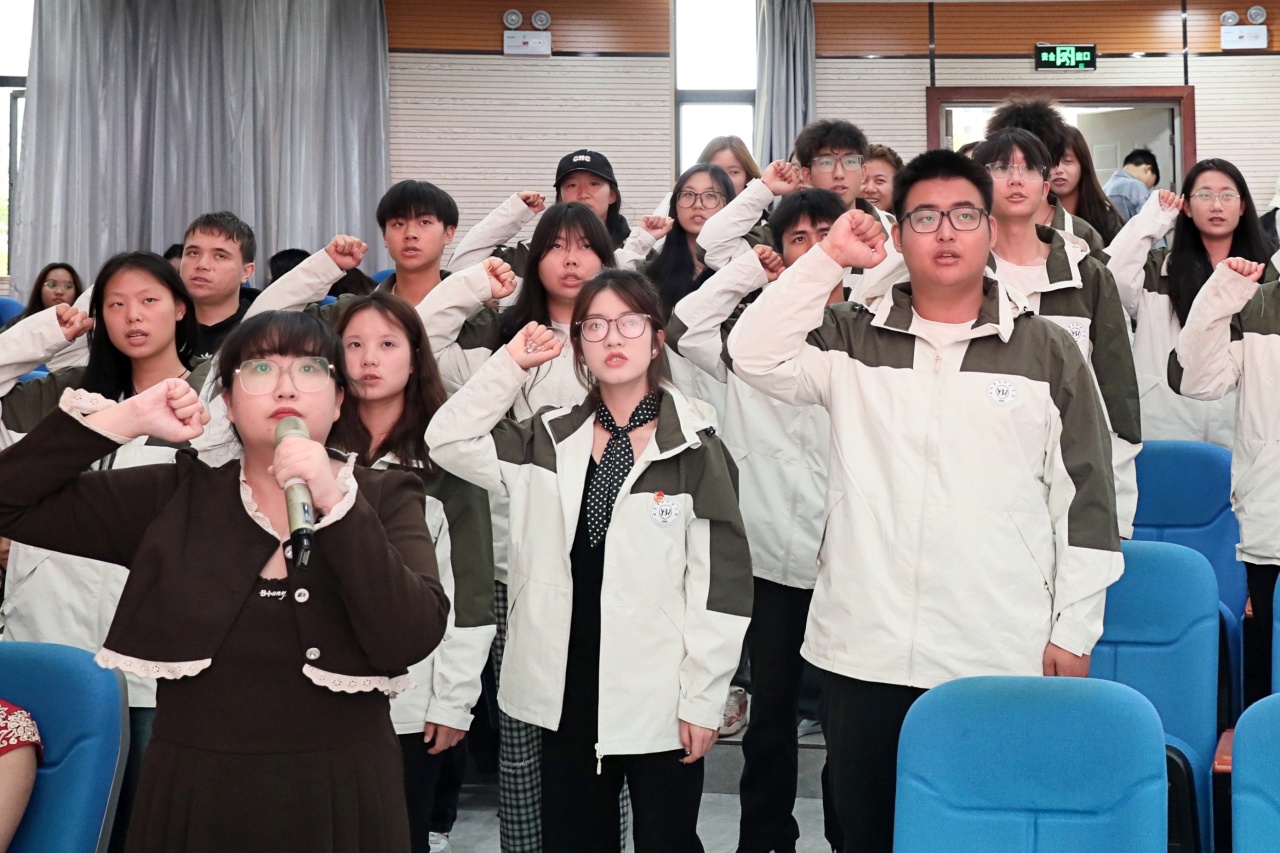 班级导师彭婧寄语新生,详细介绍了课程设置与考核标准。学生代表吴南熹表达了对未来的憧憬和坚持学习与探索的承诺。师生共同宣誓:以鲲鹏之志,搏击长空;以实干之姿,竞创未来。